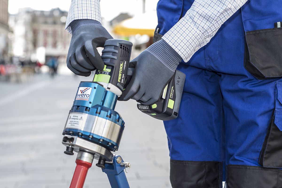 With its 650 Nm continuous torque, the GMS 650 Z is your professional partner in the gas, water, sewage and industrial sectors. Our extensive range of accessories, such as the wero telescopic output rod for the ergonomic operation of underfloor sliders, the telescopic support for the trailer hitch in particularly high-torque applications or the many separately available adapters make the GMS 650 Z a multi-talent and the first choice for all users, with a total weight of only 5.7 kg!